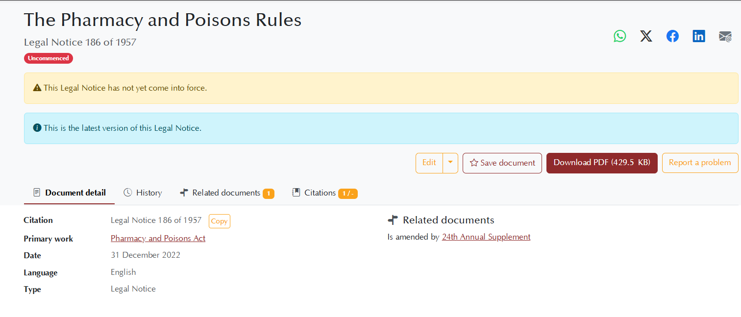 Pay attention to the banner notification, which indicates whether the amendments to the document you are viewing have been applied. If the amendments have not yet been incorporated, you can find the amending document under the **History** or **Related documents** tabs.